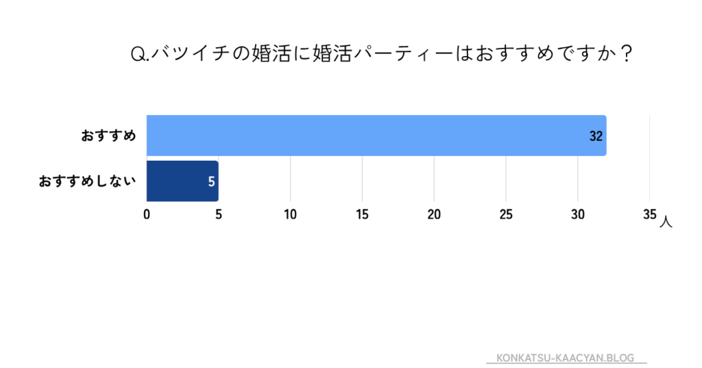 バツイチに婚活パーティーは「おすすめ」が37人中32人