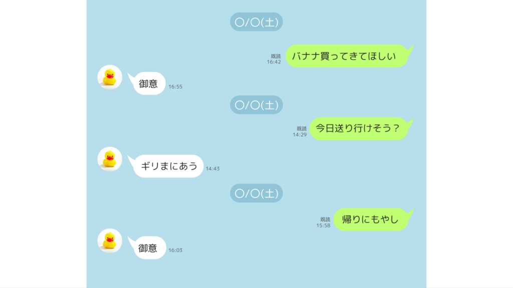 結婚後はというと、文章どこいった?レベルのやり取りへと進化しました。もはやLINEは業務連絡のツールと化しているので、甘いやり取りとは無縁です。